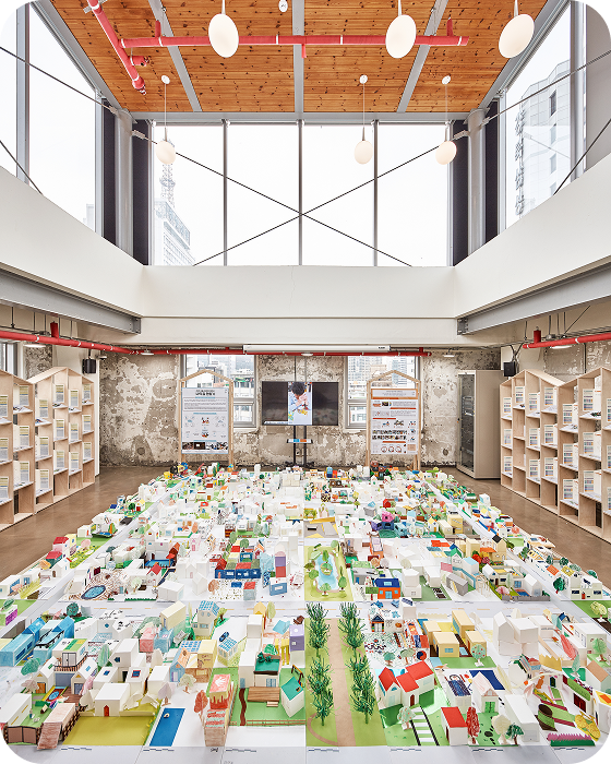 완성된 집이 모이면 마을이 됩니다. 친구들의 집을 방문하고, 나의 집을 소개하며 함께 사는 세상을 배웁니다.
